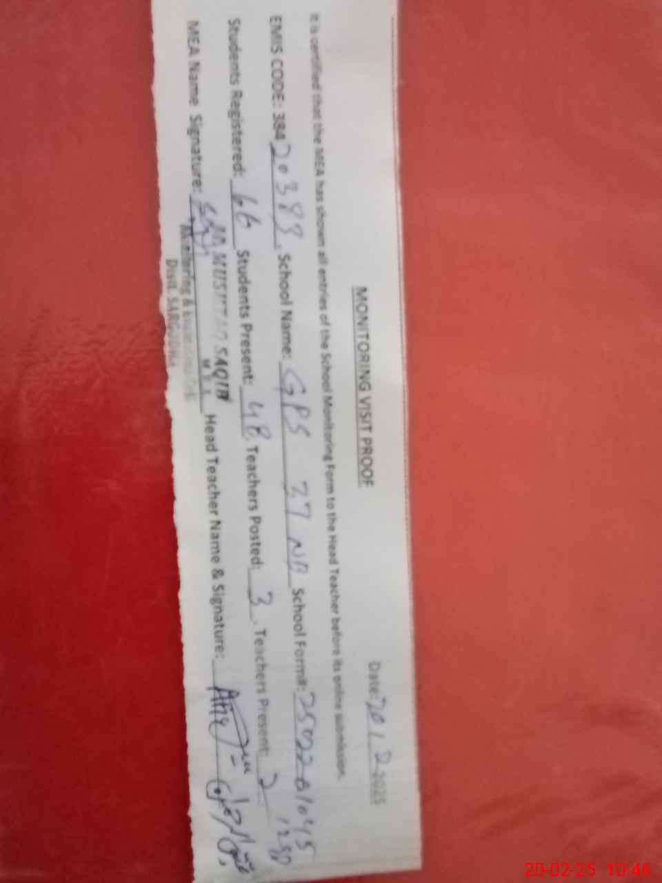 | EMIS Code: 38420383 | Name of School: GPS CHAK NO.37 NB | |||