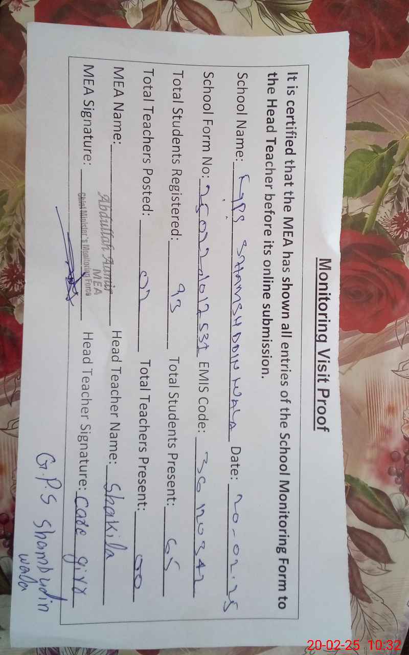 | EMIS Code: 36120342 | Name of School: GPS SHAMS-UD-DIN WALA SHUJA ABAD | |||
