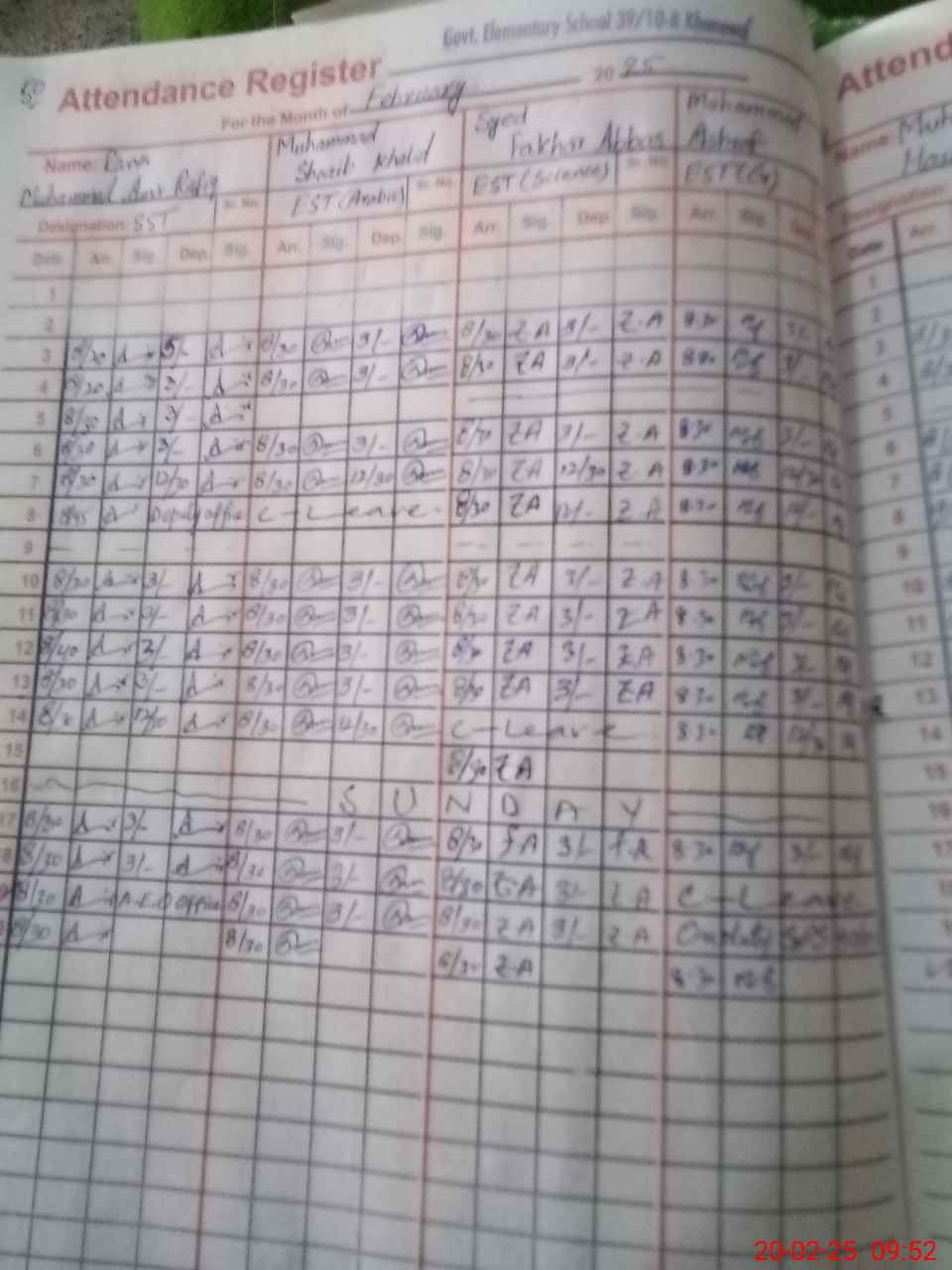 | CNIC | Full Name | Designation | R/C | Absence During Last Calender Month |