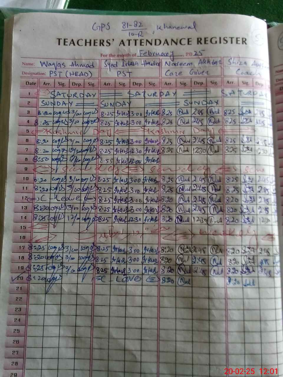 | 36**** | Sy**** Ir**** Ha**** | PST | Regular | 2 | 0 | 0 | 0 | 0 | 0 | 0 | 0 | 2 | Casual |