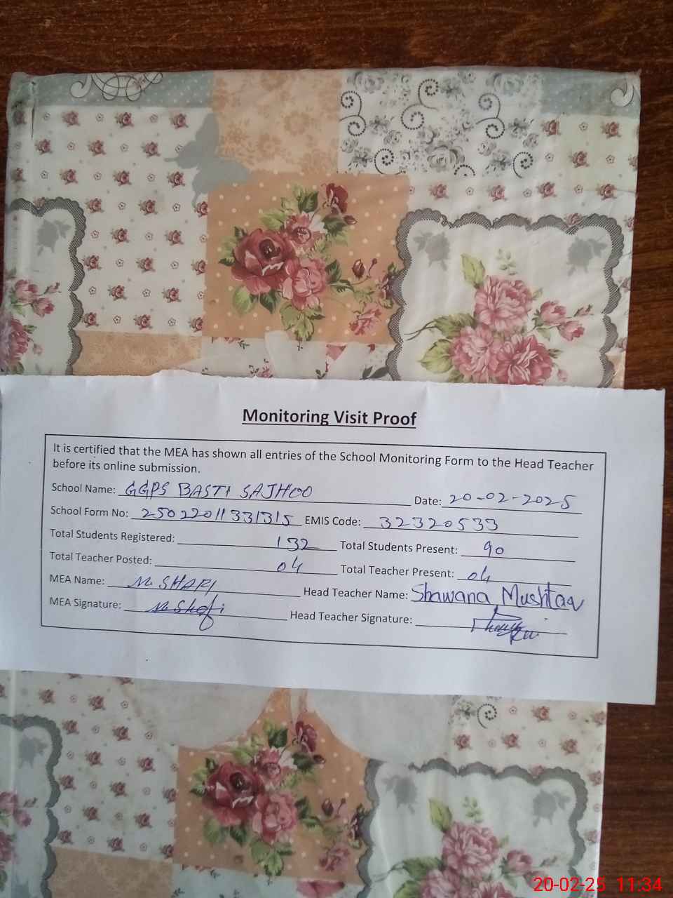 | EMIS Code: 32320533 | Name of School: GGPS BASTI SAJHOO WALA | |||