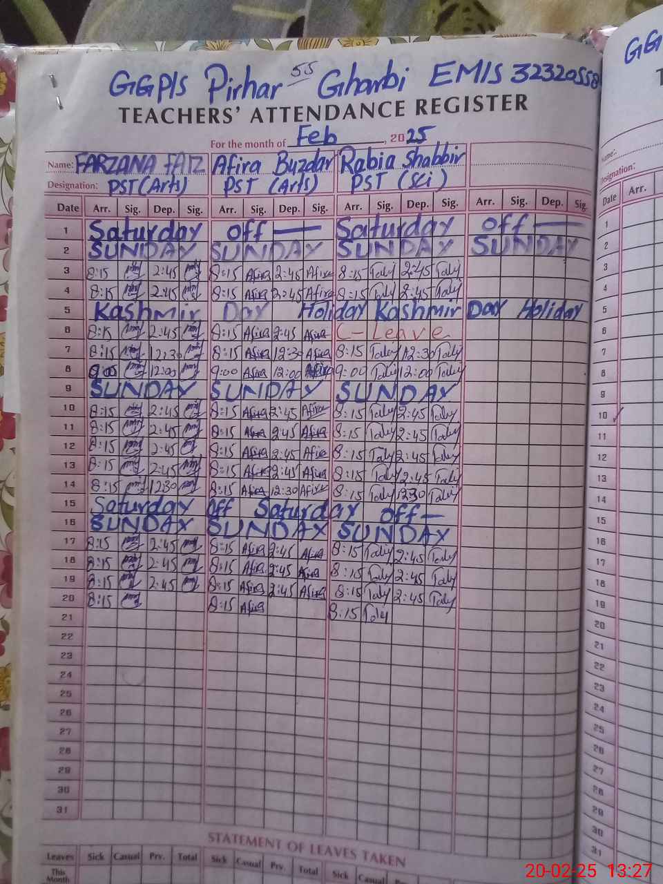 | EMIS Code: 32320558 | Name of School: GGPS PIHAR GHARBI | |||
