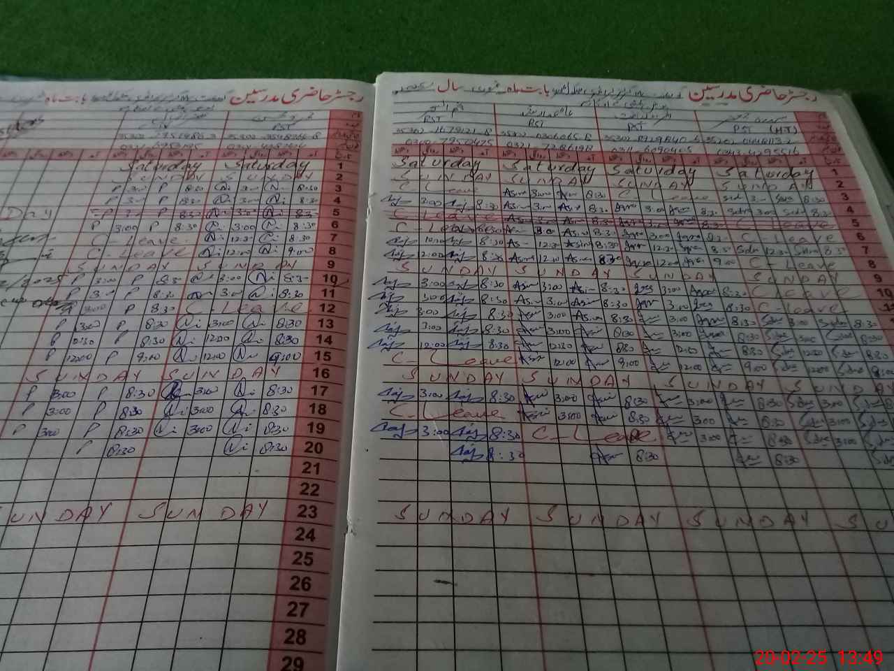 | CNIC | Full Name | Designation | R/C | Absence During Last Calender Month |