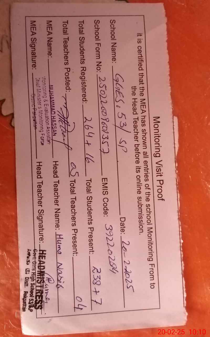 | EMIS Code: 39220284 | Name of School: GGES 53 SP POST OFFICE JEVEN SHAH | |||