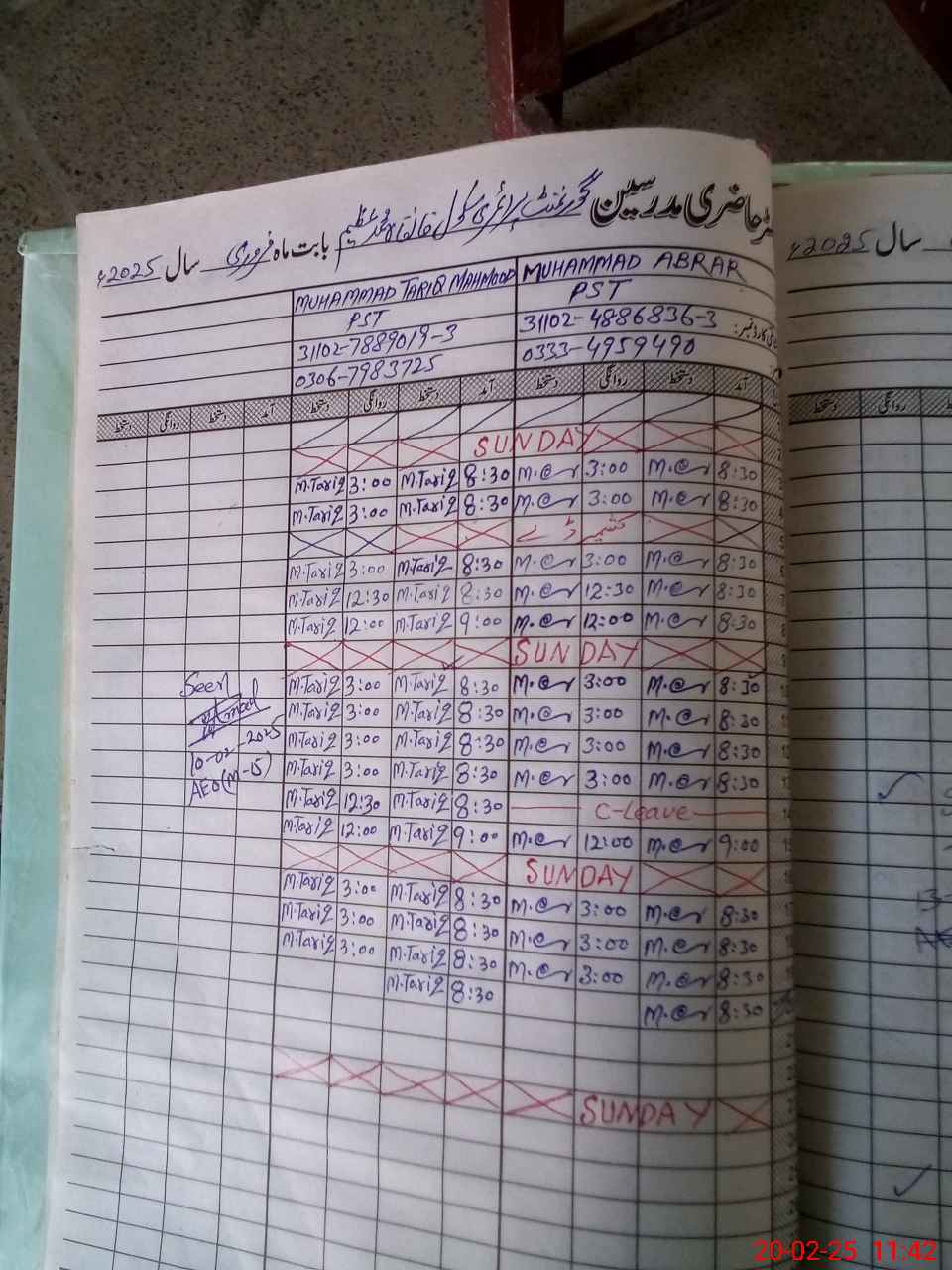 | CNIC | Full Name | Designation | R/C | Absence During Last Calender Month |