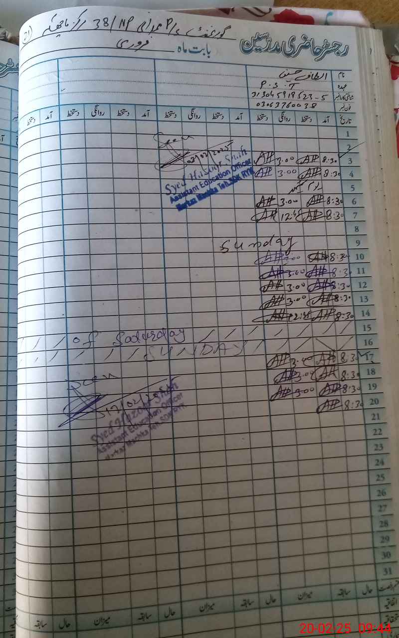| Name: Al**** Hu**** Designation: (School Headmaster's/Headmistress's) PST/PTC/JV Phone/Cell Number: 03**** |