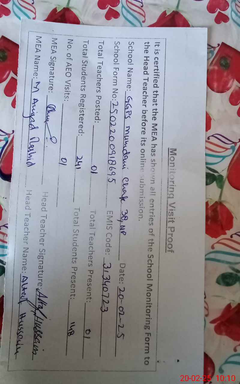 | EMIS Code: 31340723 | Name of School: GPS MUMDNI CHAK NO 38/NP MACHKA | |||
