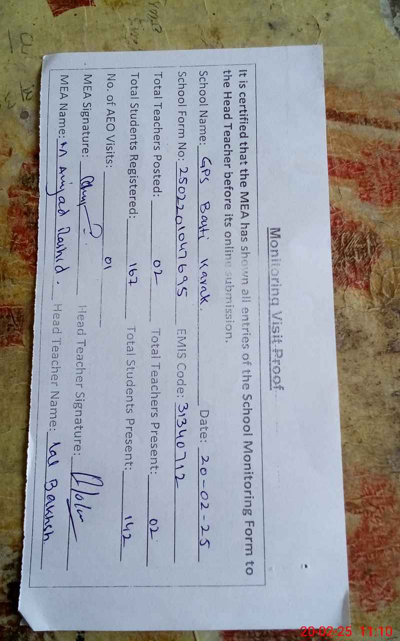 | EMIS Code: 31340712 | Name of School: GPS BASTI KARAK | |||