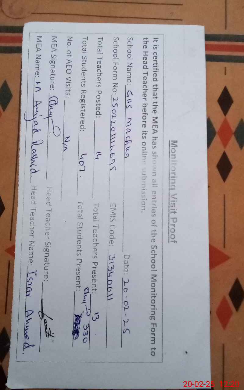 | EMIS Code: 31340011 | Name of School: GHS MACHKA | |||