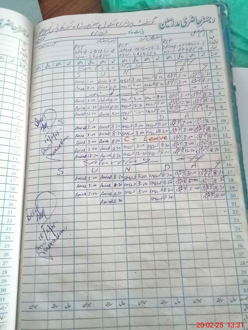 | CNIC | Full Name | Designation | R/C | Absence During Last Calender Month |