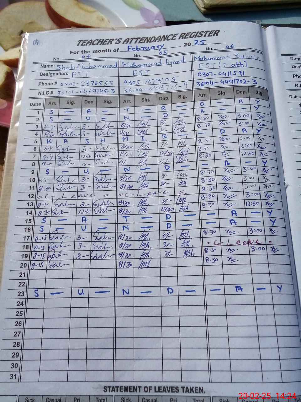 | Name: Mu**** Is**** Designation: (School Headmaster's/Headmistress's) E.S.T Phone/Cell Number: 03**** |