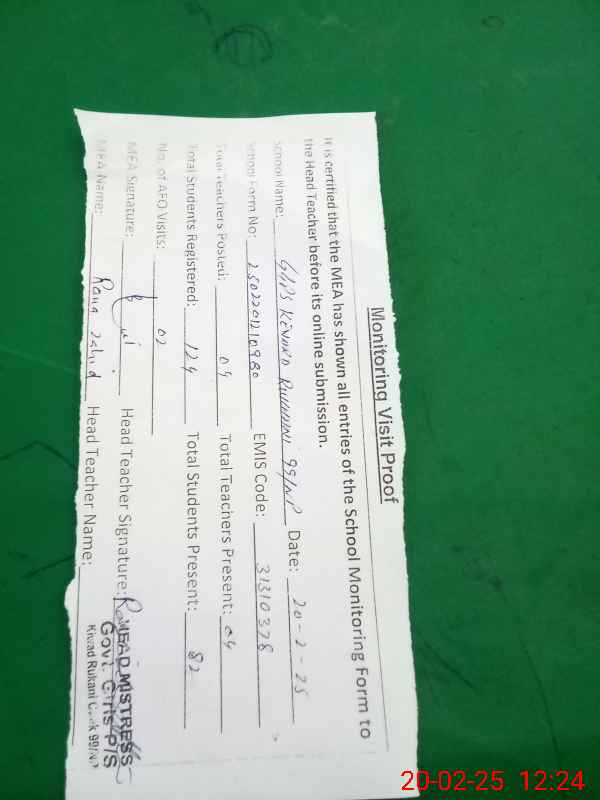 | Attendance Register | Head Teacher | MEA with School | Visit Proof |