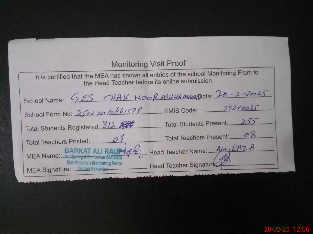 | EMIS Code: 39210035 | Name of School: GES CHAK NOOR MUHAMMAD | |||