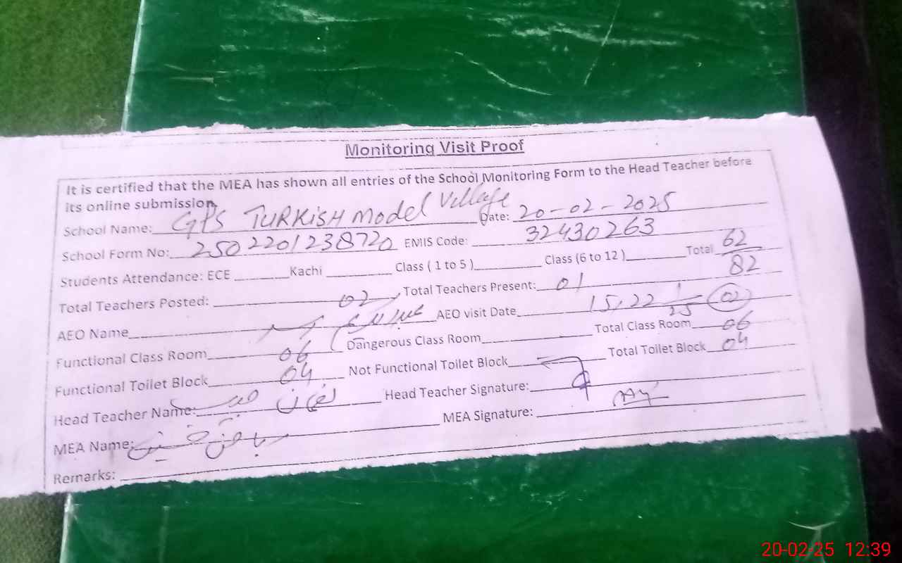 | EMIS Code: 32430263 | Name of School: GPS TURKISH MODEL VILLAGE SAFDAR ABAD | |||