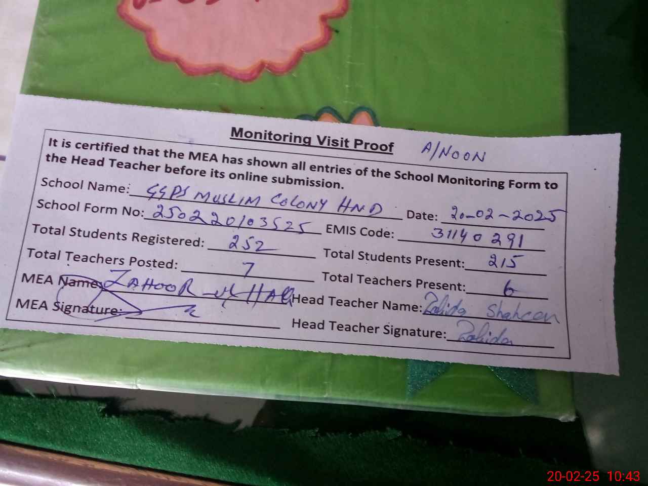 | EMIS Code: 31140291 | Name of School: GGPS MUSLIM COLONY HAROONABAD | |||