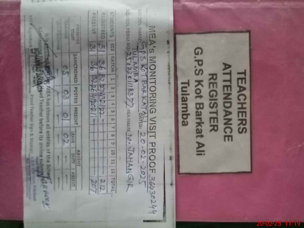 | EMIS Code: 36430244 | Name of School: GPS KOT BARKAT ALI, TULAMBA | |||