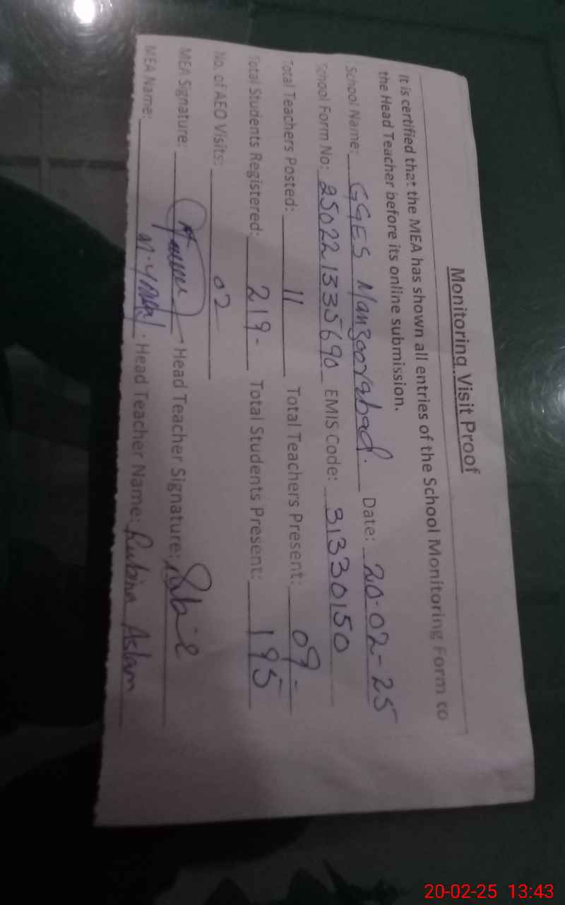| EMIS Code: 31330150 | Name of School: GGES MANZOOR ABAD | |||