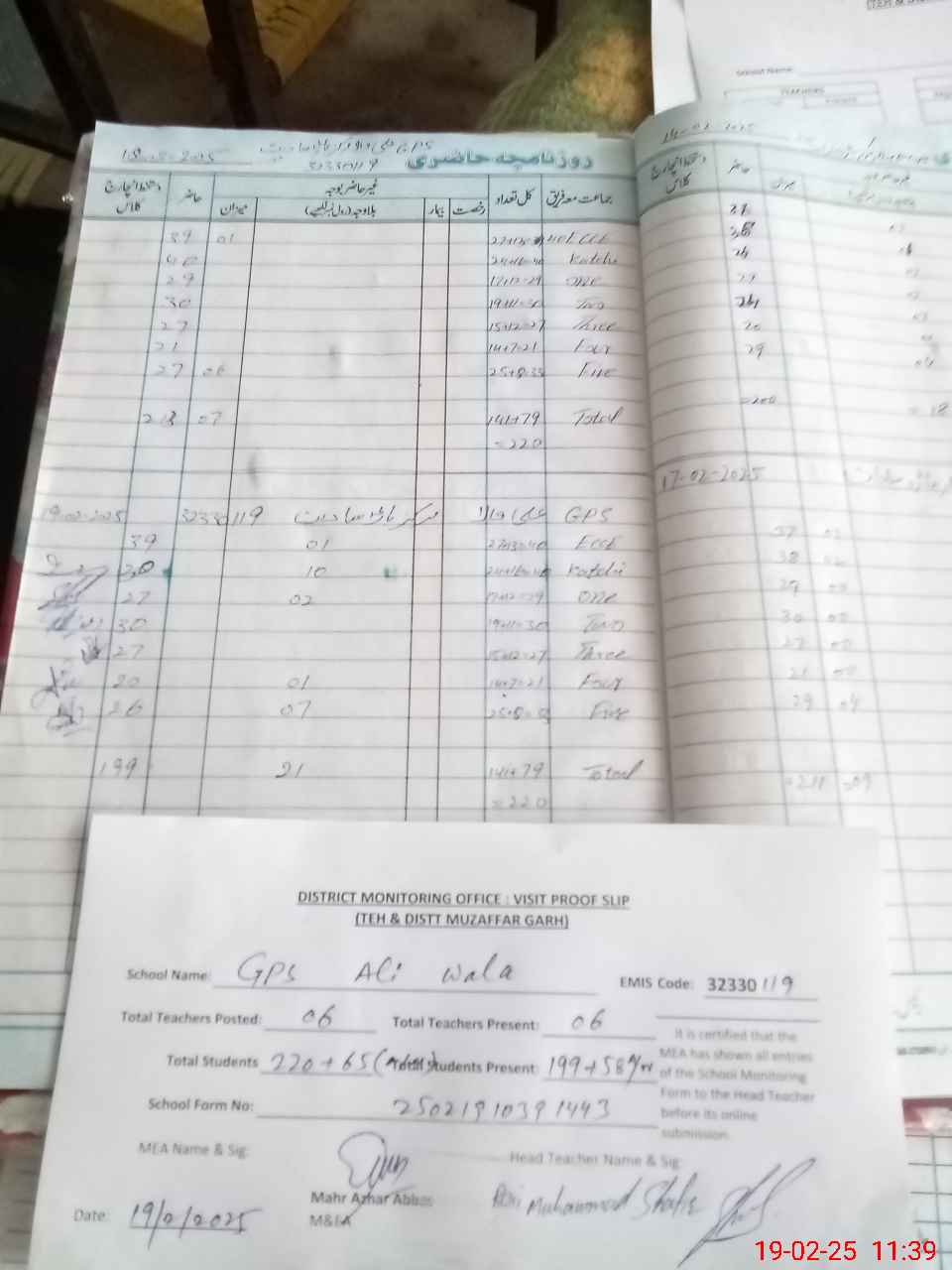 | EMIS Code: 32330119 | Name of School: GPS ALI WALA | |||