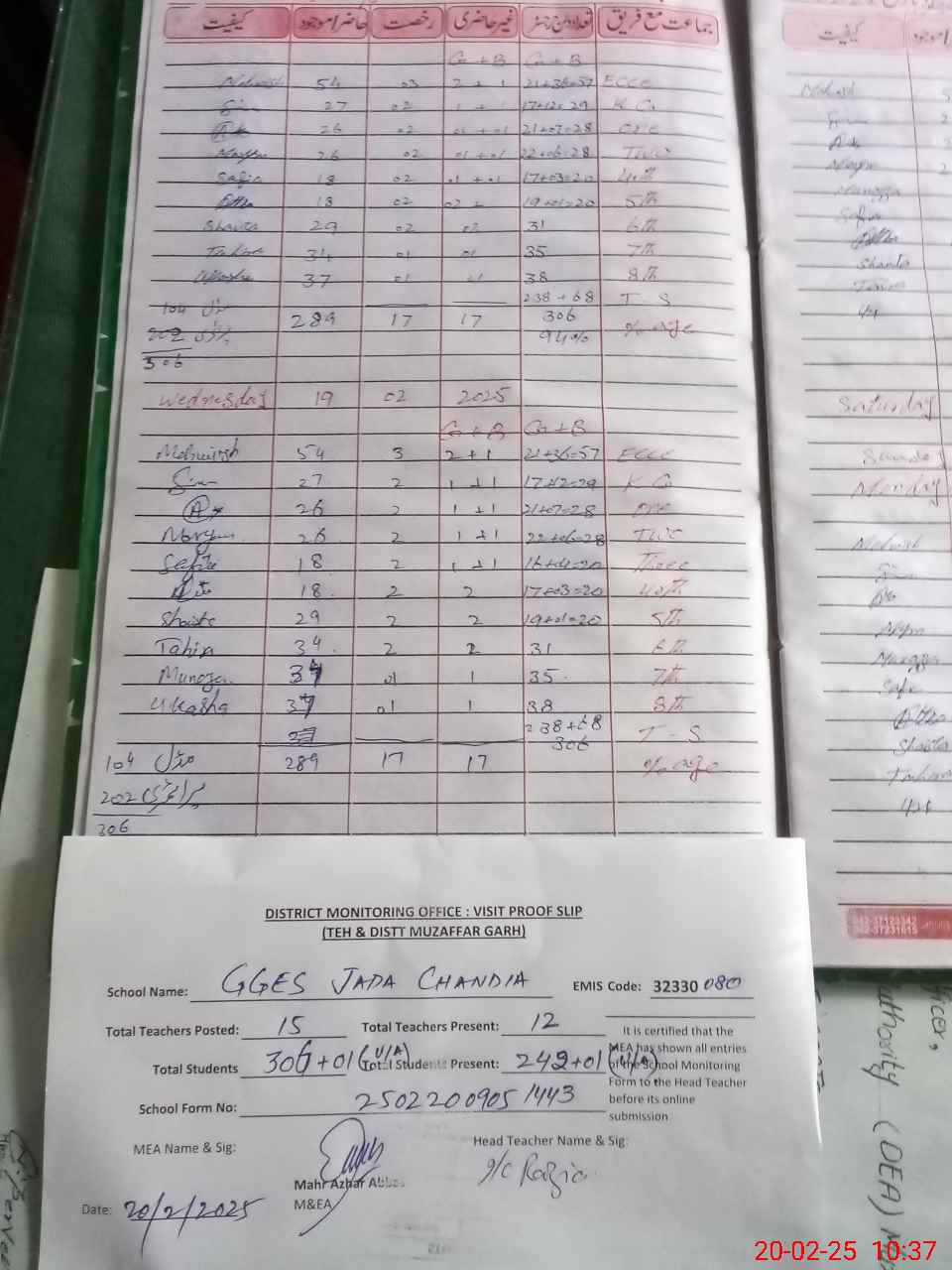 | EMIS Code: 32330080 | Name of School: GGES JADA CHANDIA | |||