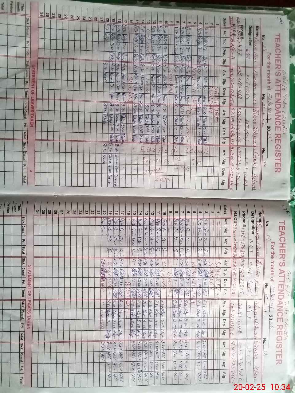 | Remarks (Use Separate Page if Required): Mr Altaf Hussain C IV is working in Dy DEO Female since 03 January 2025 on verbal Instructions of AEO But No written orders received for such duty That is why he is marked as ABSENT from his original place of duty Huge mismatch of 46 students in Roznamcha and physical Head count | |||||