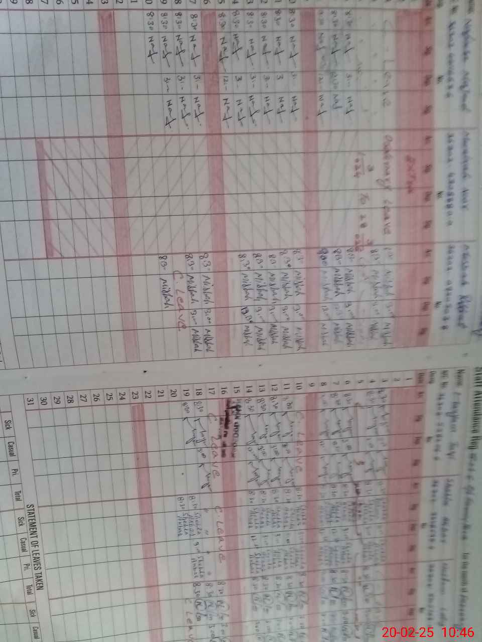 | Leave | Duty | Absent | Maternity | Medical | Ex- Pak |