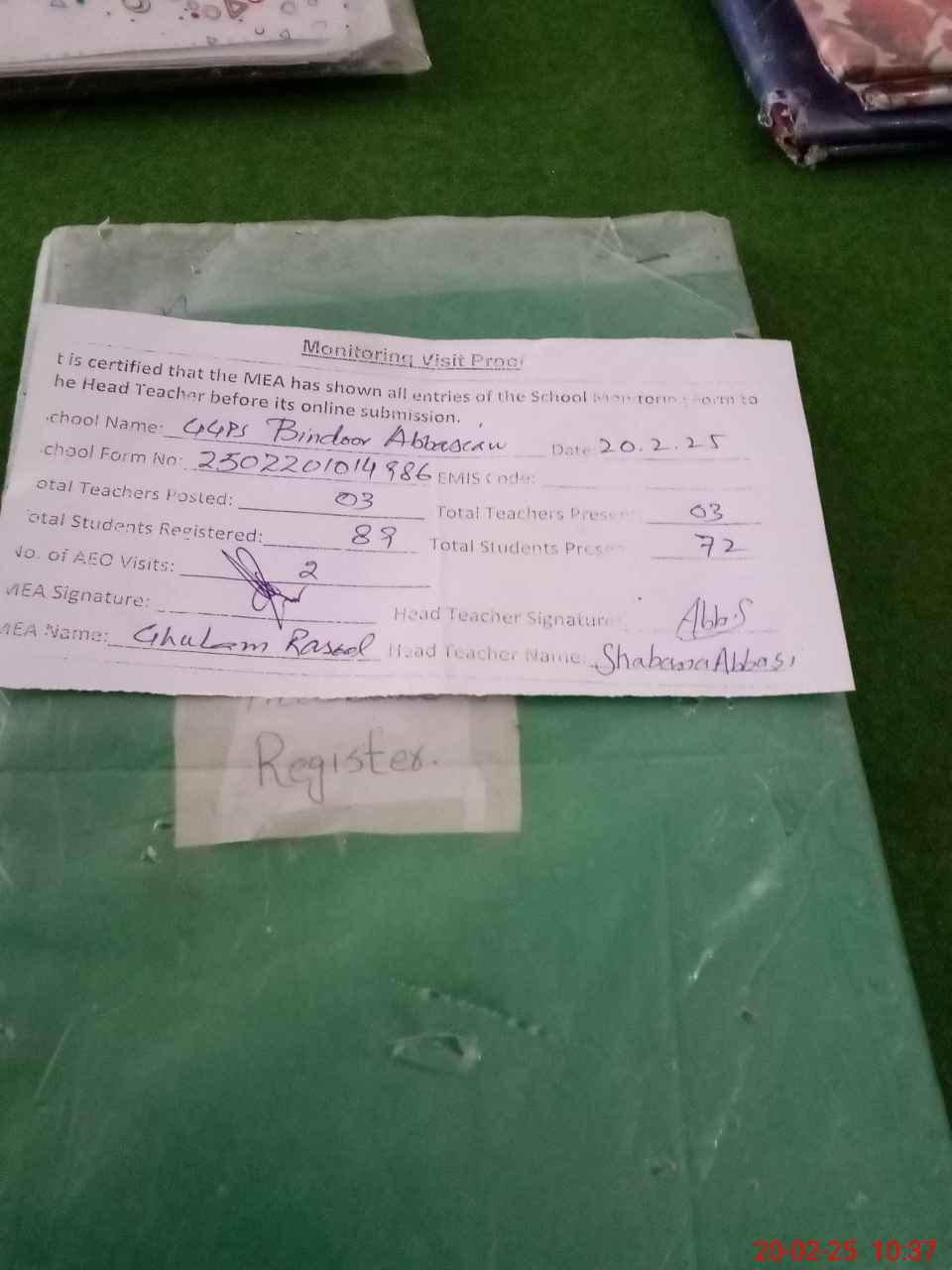 | EMIS Code: 31340554 | Name of School: GGPS BINDORE ABBASIAN | |||