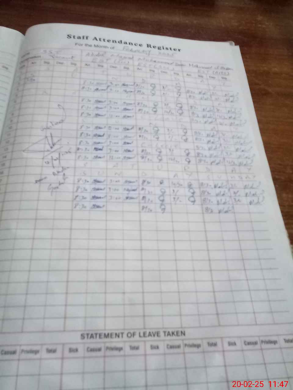 | CNIC | Full Name | Designation | R/C | Absence During Last Calender Month |