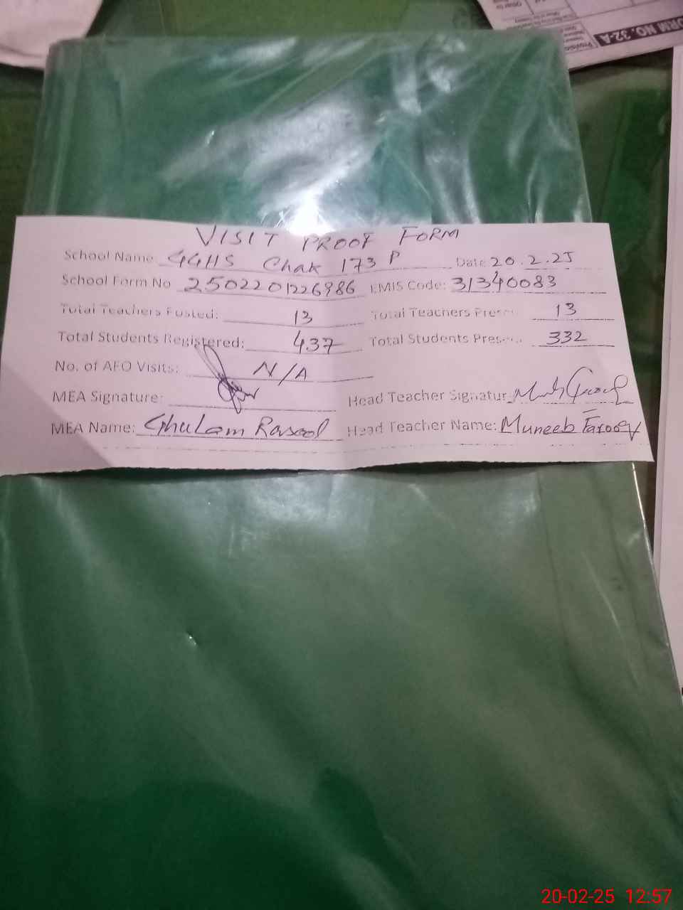 | EMIS Code: 31340083 | Name of School: GGHS CHAK 173/P | |||