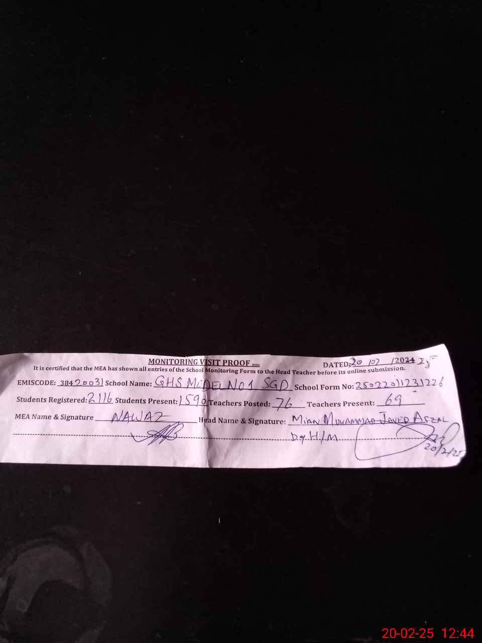 | EMIS Code: 38420031 | Name of School: GHS MODEL NO.1 SARGODHA | |||