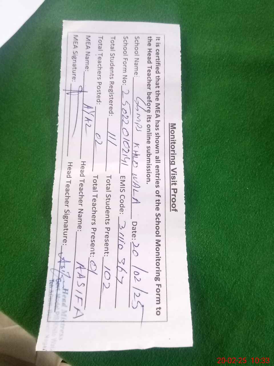 | EMIS Code: 31110367 | Name of School: GMPS KHILO WALA | |||