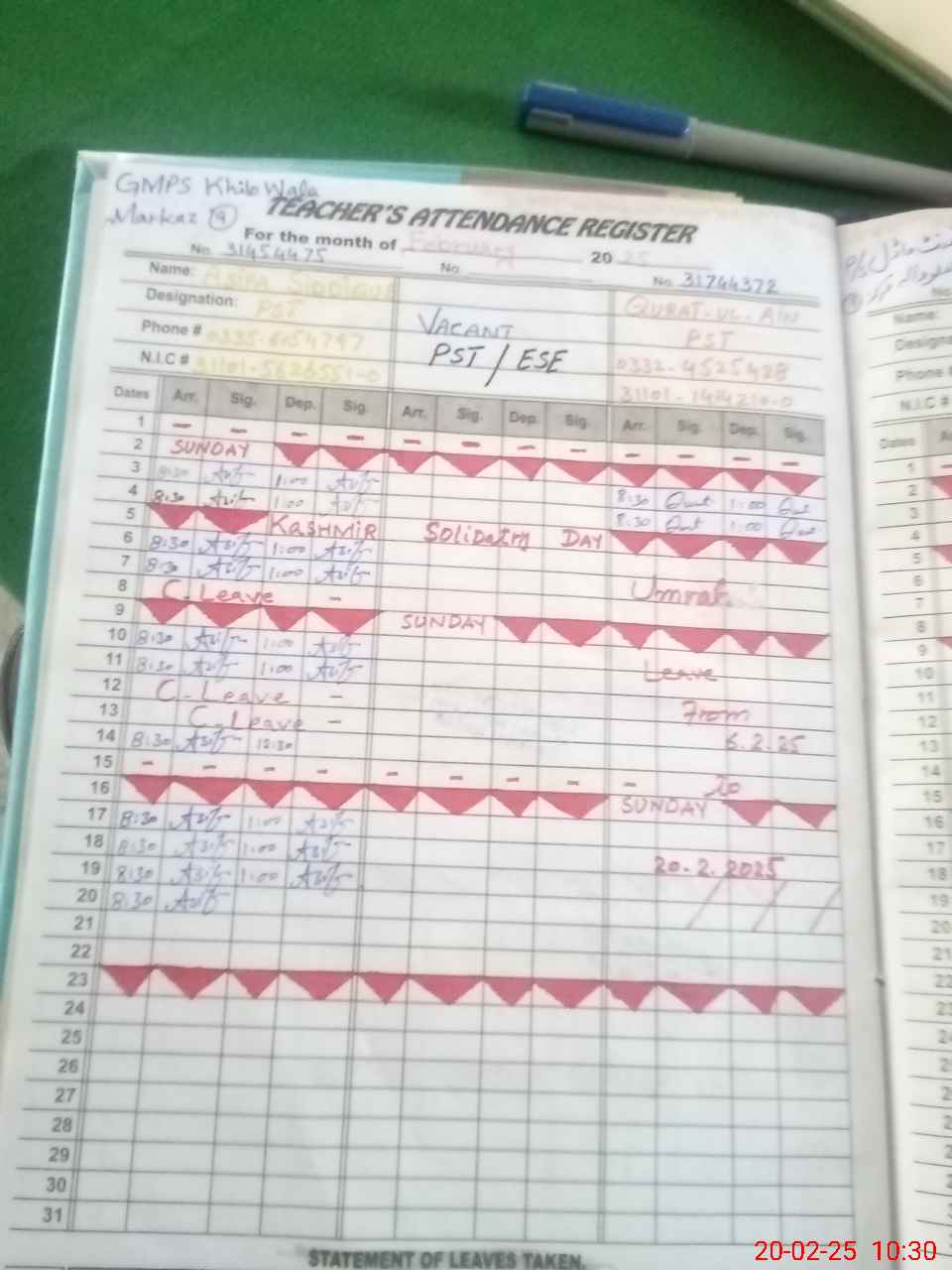 | Name: AS**** SI**** Designation: (School Headmaster's/Headmistress's) PST Phone/Cell Number: 03**** |