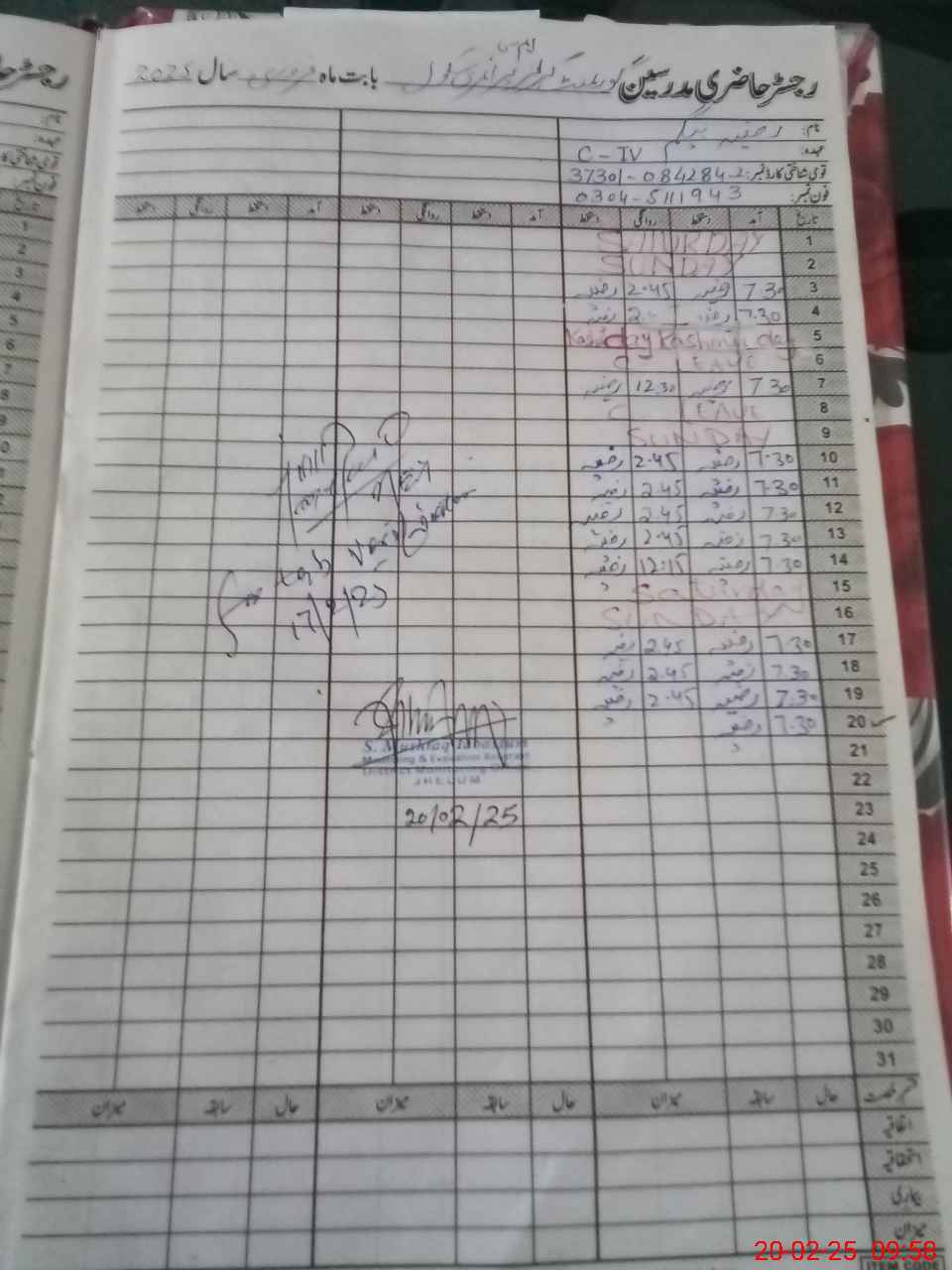 | CNIC | Full Name | Designation | R/C | Absence During Last Calender Month |