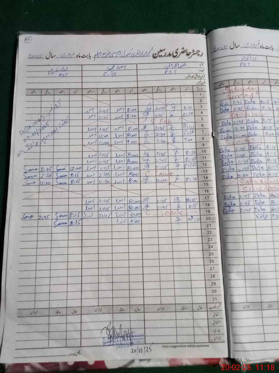 | 37**** | Ar**** Ba**** | PST | Regular | 2 | 0 | 0 | 0 | 0 | 0 | 0 | 0 | 2 | Casual |