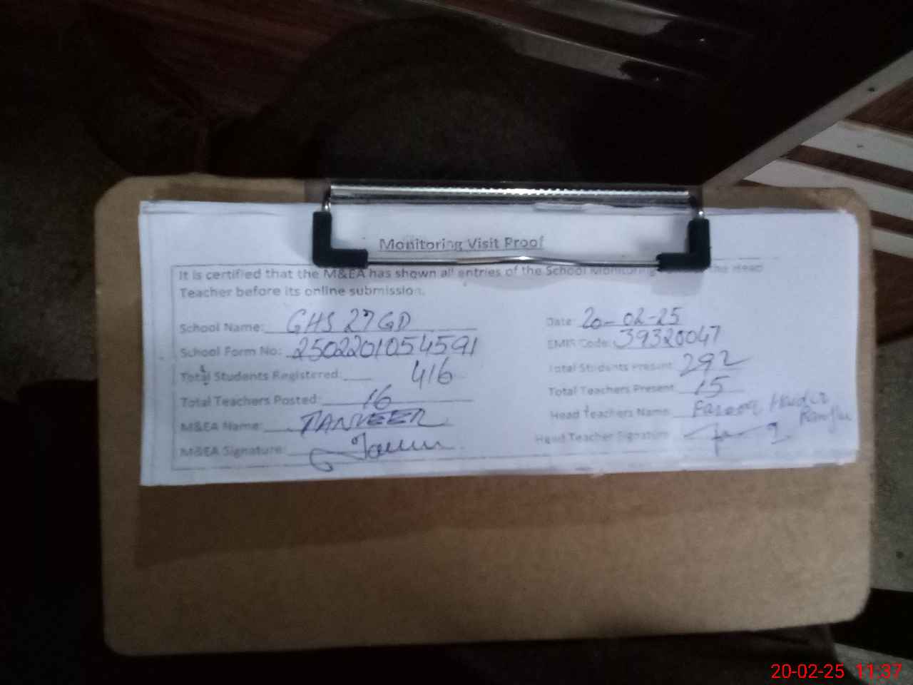 | EMIS Code: 39320047 | Name of School: GHS 27/G.D | |||