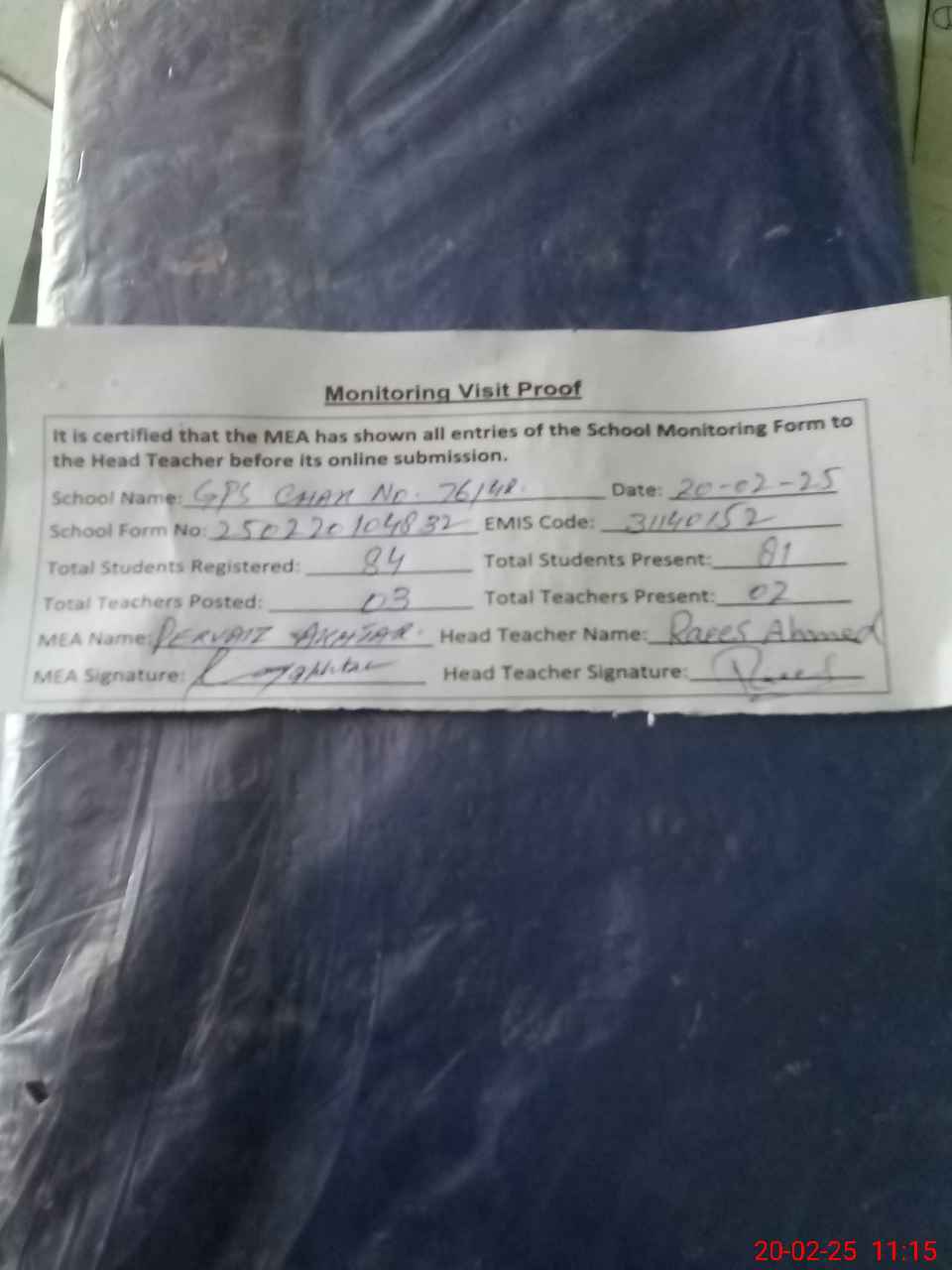| EMIS Code: 31140152 | Name of School: GPS CHAK NO 76/4-R | |||