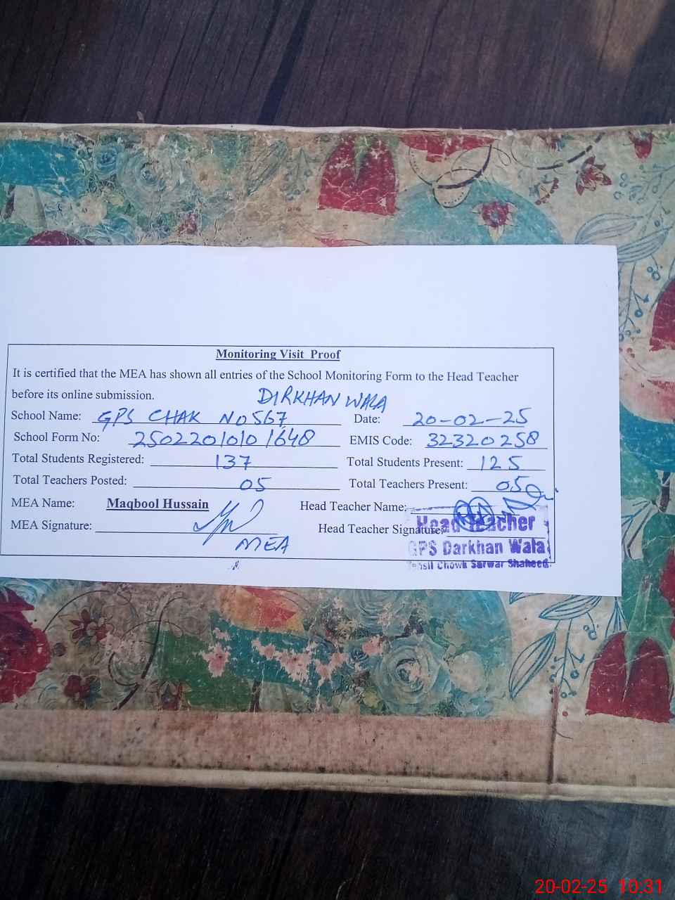 | EMIS Code: 32320258 | Name of School: GPS DIRKHAN WALA | |||