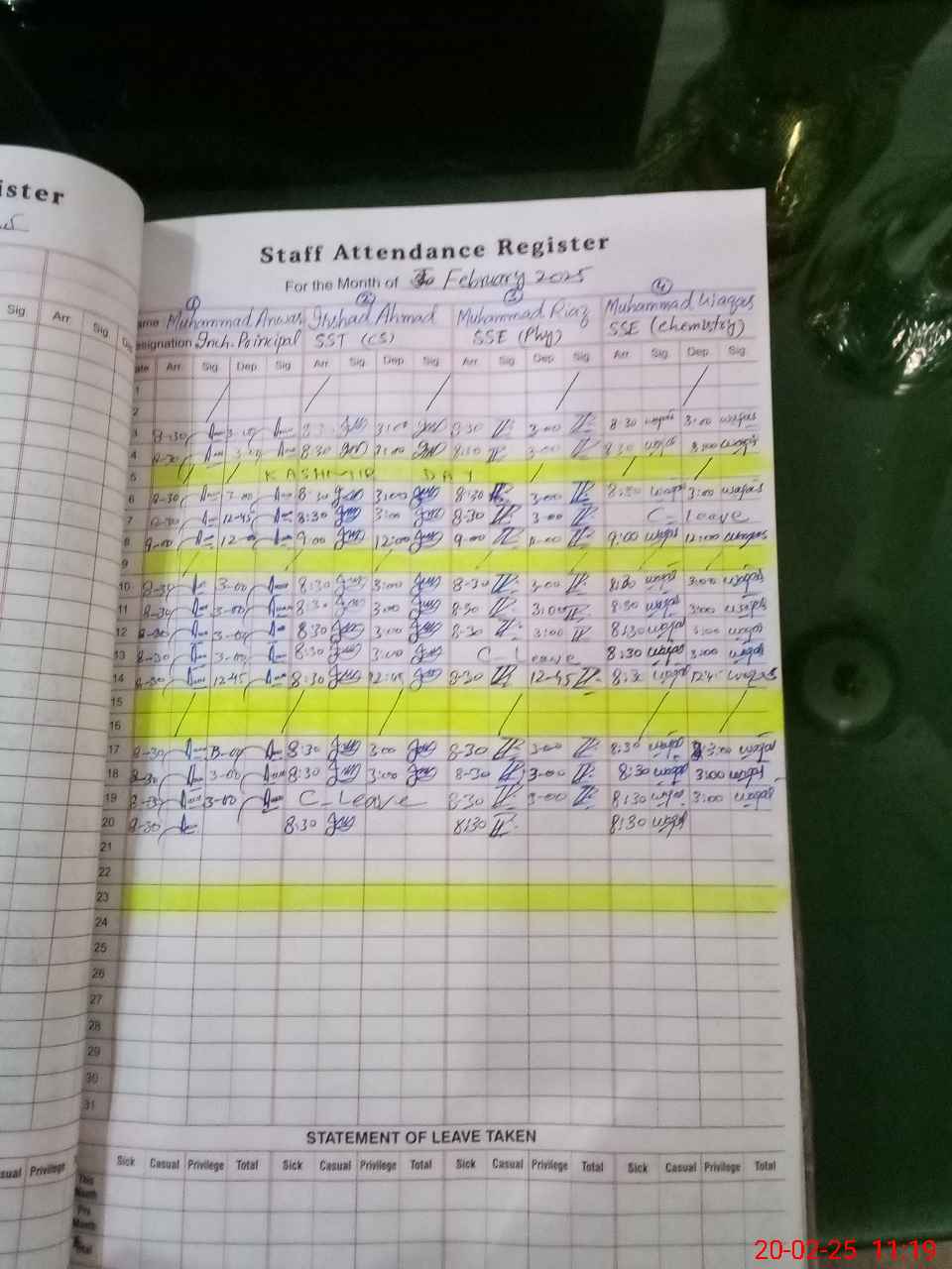 | 31**** | Mu**** Sa**** | NQ | 0 | 31 | 0 | 0 | 0 | 0 | 0 | 0 | 0 | Absent (Un-Authorized) | |