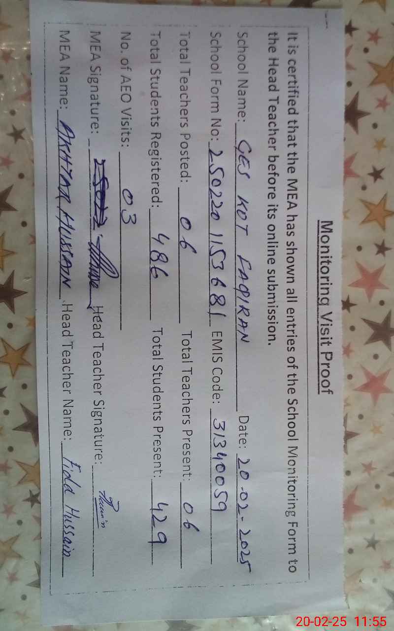 | EMIS Code: 31340059 | Name of School: GES KOT FAQIRAN | |||
