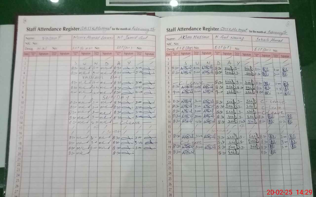 | CNIC | Full Name | Designation | R/C | Absence During Last Calender Month |