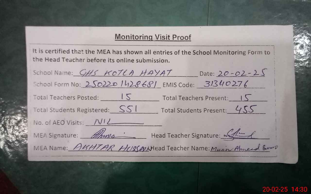 | EMIS Code: 31340276 | Name of School: GHS KOTLA HAYAT | |||