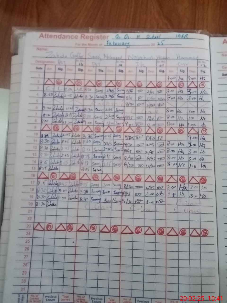 | CNIC | Full Name | Designation | R/C | Absence During Last Calender Month |