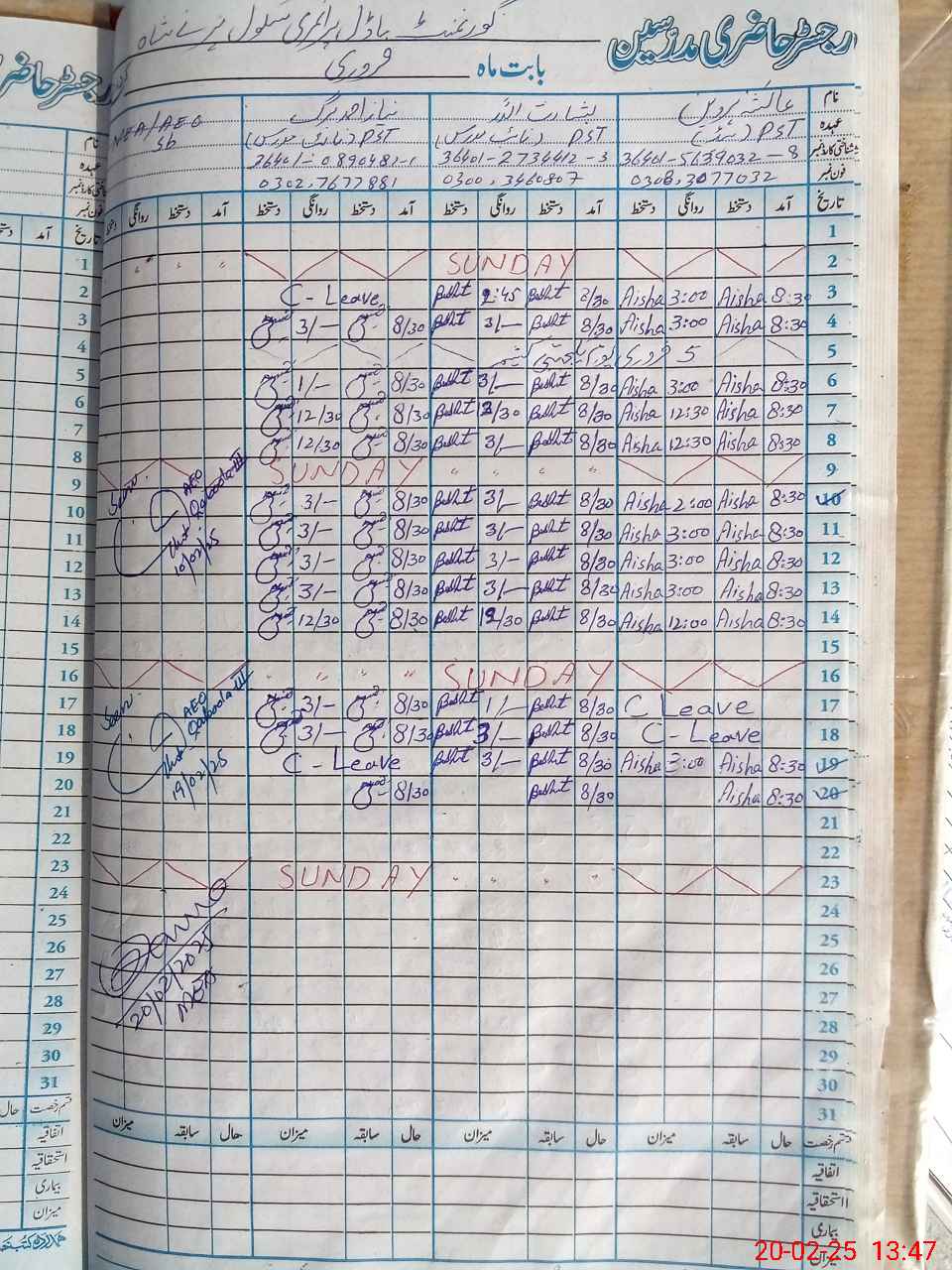 | Name: AI**** PE**** Designation: (School Headmaster's/Headmistress's) PST Phone/Cell Number: 03**** |