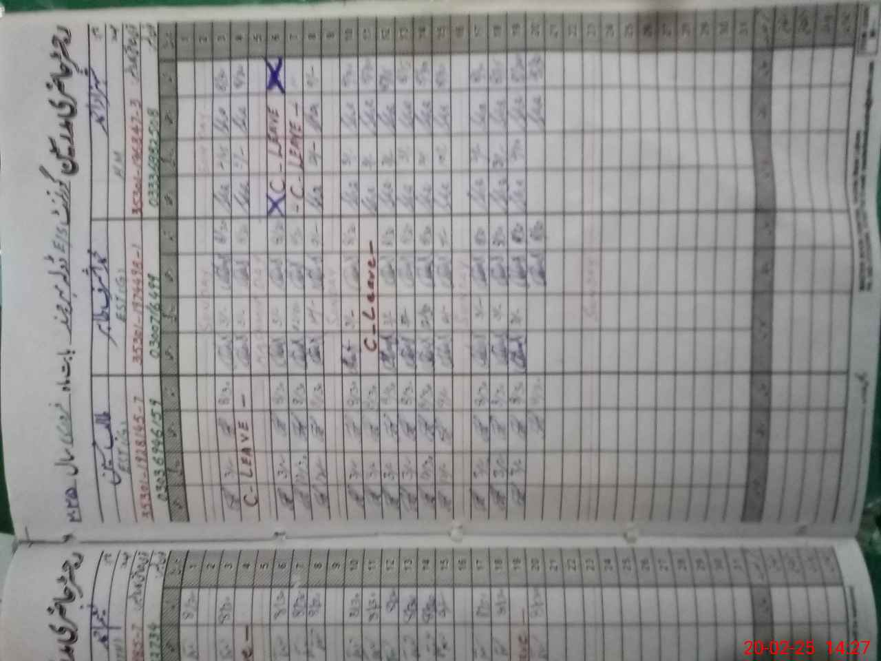 | CNIC | Full Name | Designation | R/C | Absence During Last Calender Month |