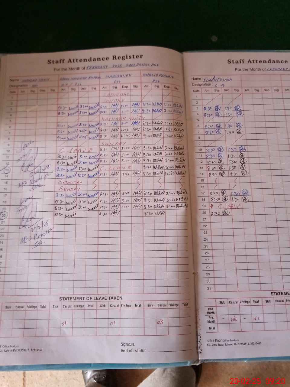 | Name: AB**** HA**** Designation: (School Headmaster's/Headmistress's) PST Phone/Cell Number: 03**** |
