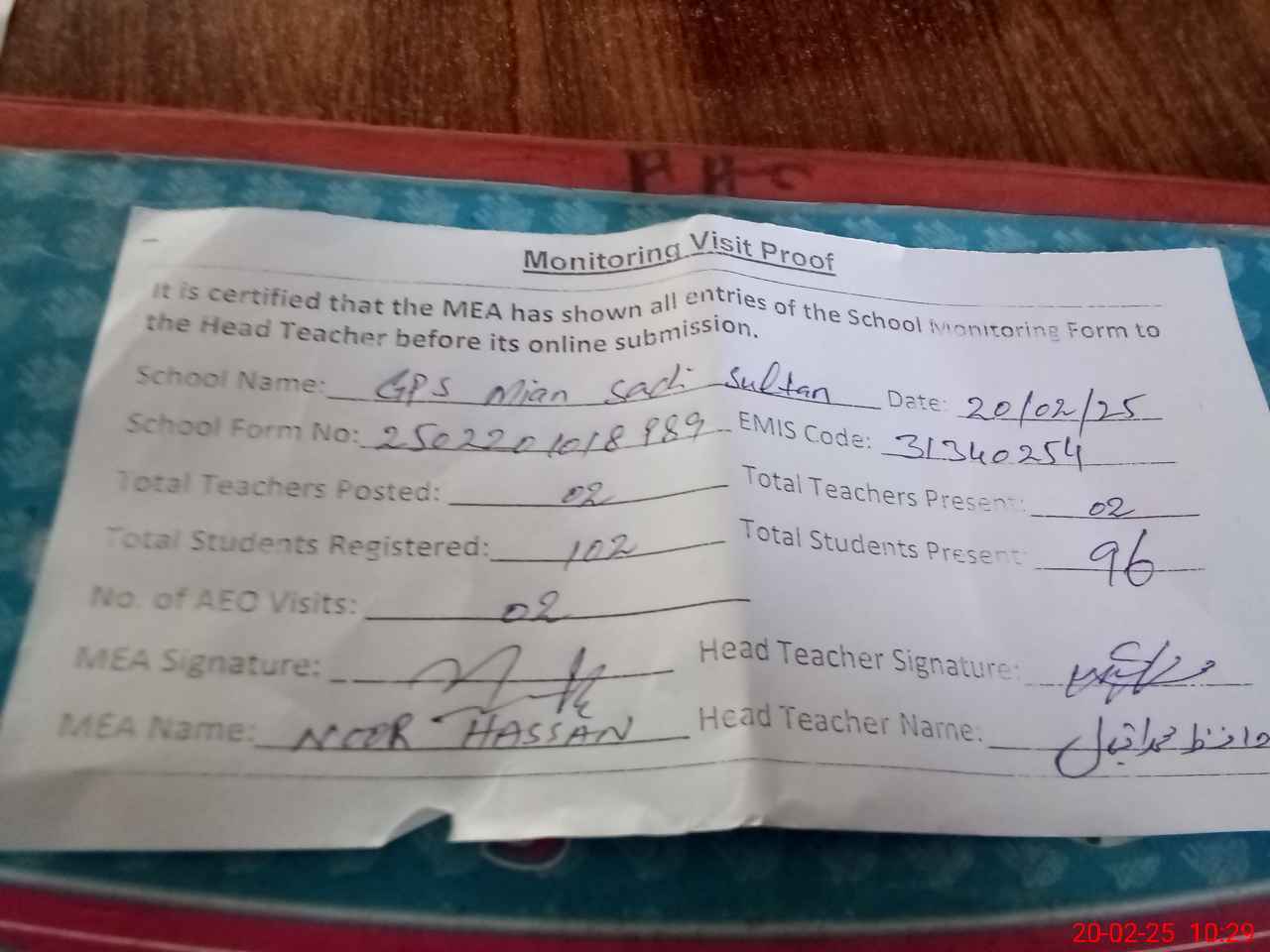 | EMIS Code: 31340254 | Name of School: GPS MIANS SAIDY SULTAN | |||