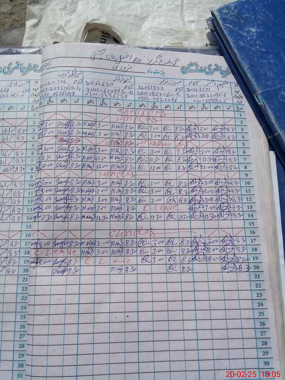 | CNIC | Full Name | Designation | R/C | Absence During Last Calender Month |