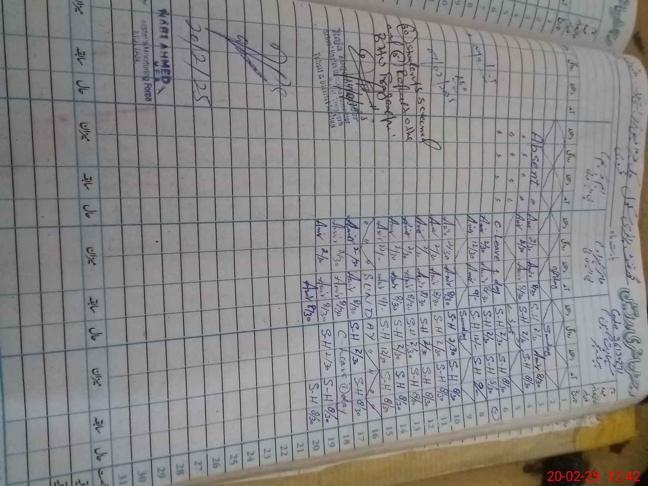 | CNIC | Full Name | Designation | R/C | Absence During Last Calender Month |