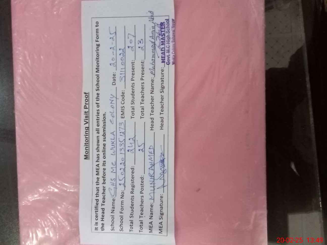 | EMIS Code: 31110022 | Name of School: GHS MC WUKLA COLONY BAHAWALNAGAR | |||