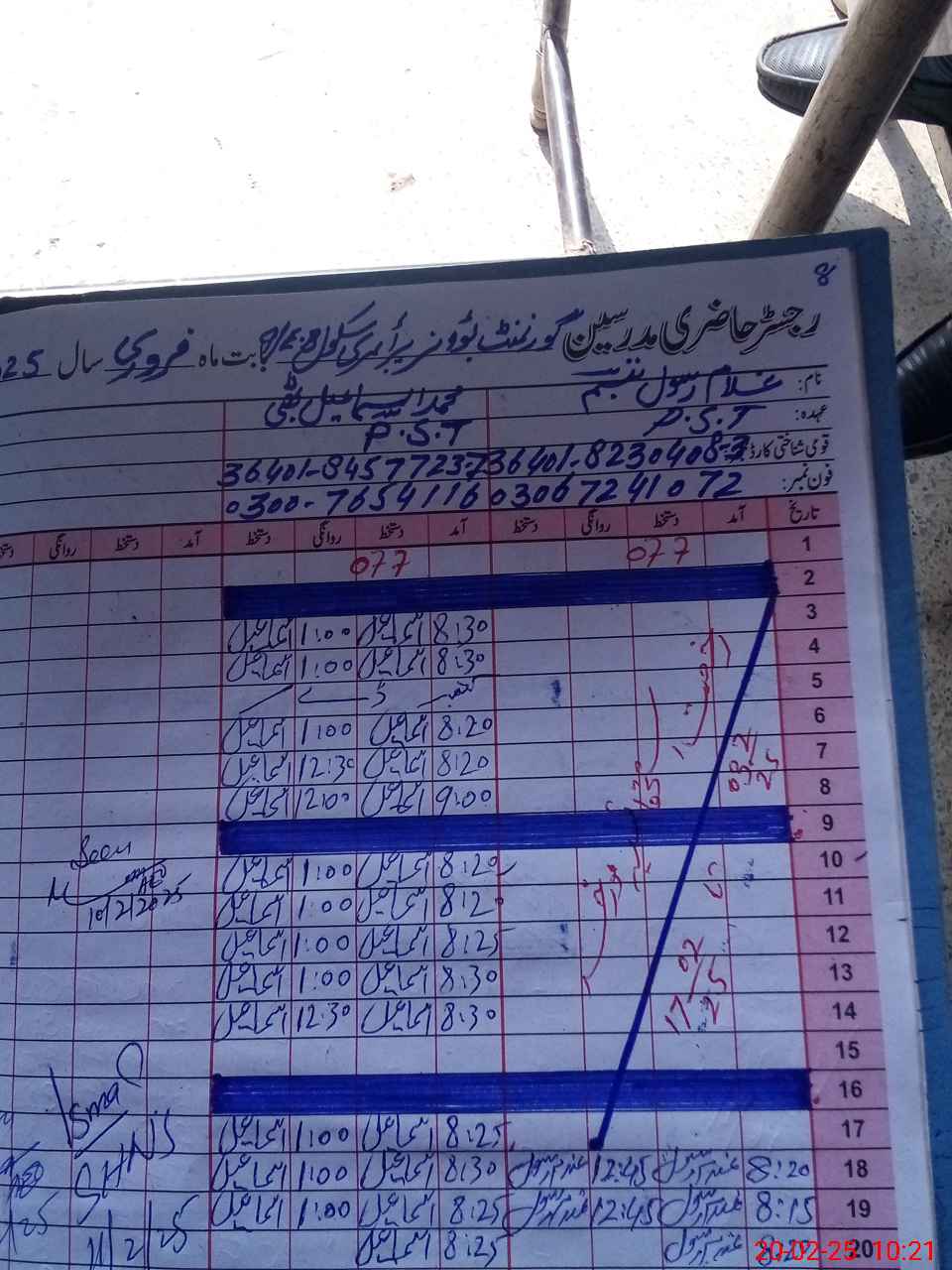 | Name: MU**** IS**** Designation: (School Headmaster's/Headmistress's) PST Phone/Cell Number: 03**** |