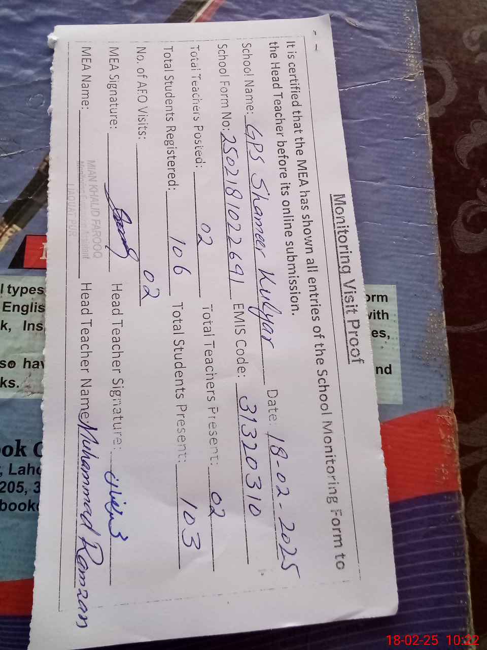 | EMIS Code: 31320310 | Name of School: GPS SHAMEER KULIAR | |||